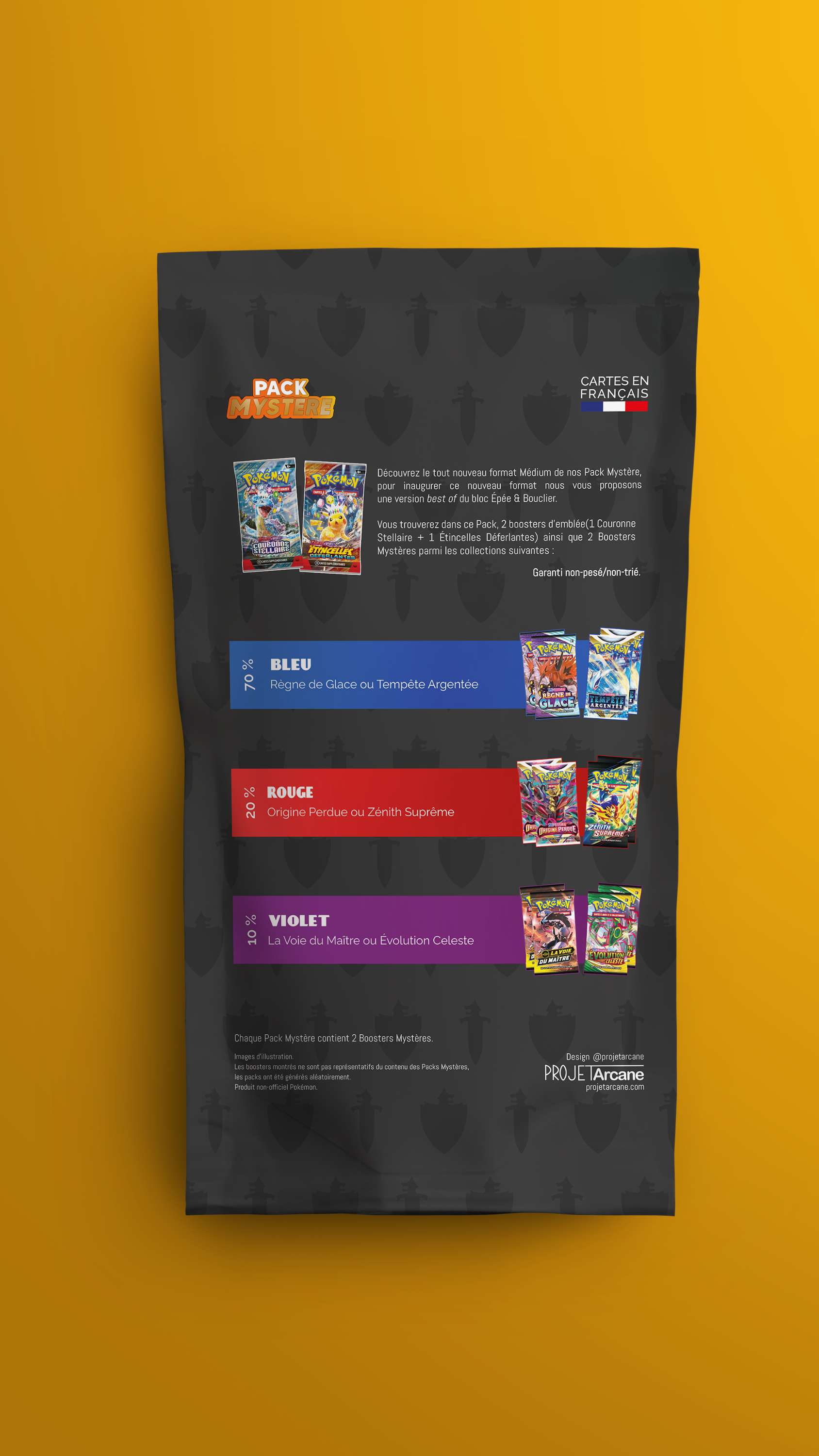 Les Pack Mystère sont des produits originaux crées par le @projetarcane, inspirés par les PokeRev Packs